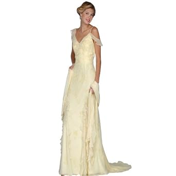 Steal Charlize Theron's red carpet style in this oscar style favorite. Updated silk tank formal dress with flutter detail and delicate beading. Fit Tip: This dress is form fitted use bust,waist and hip measurements to determine fit.Perfect informal wedding.